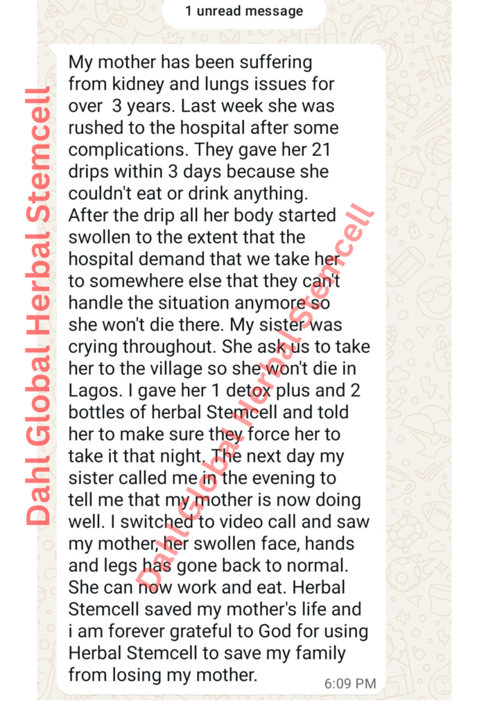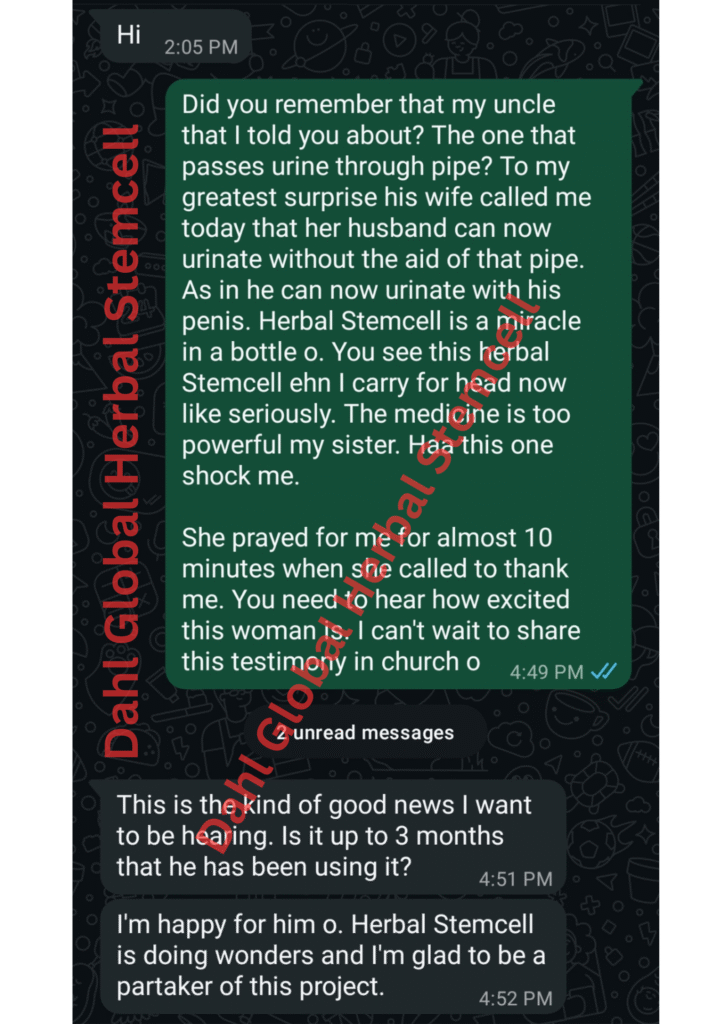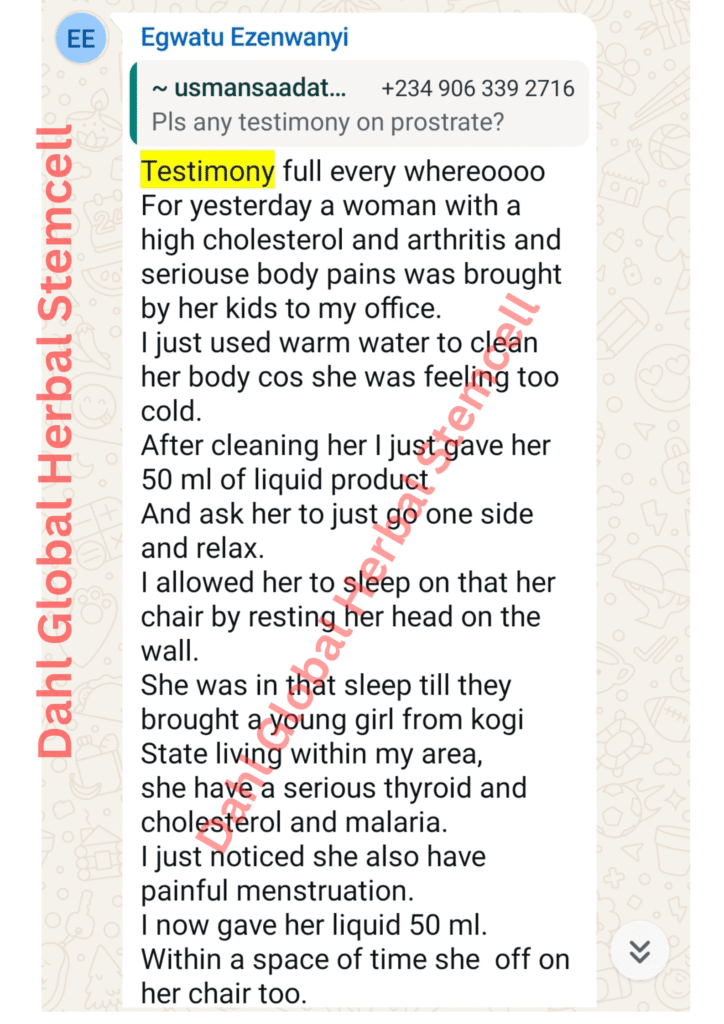 Dahl Global Herbal Stemcell is guaranteed to cure you and give you lasting solution.